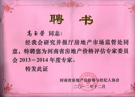 河南省房地產業協會估價經紀專